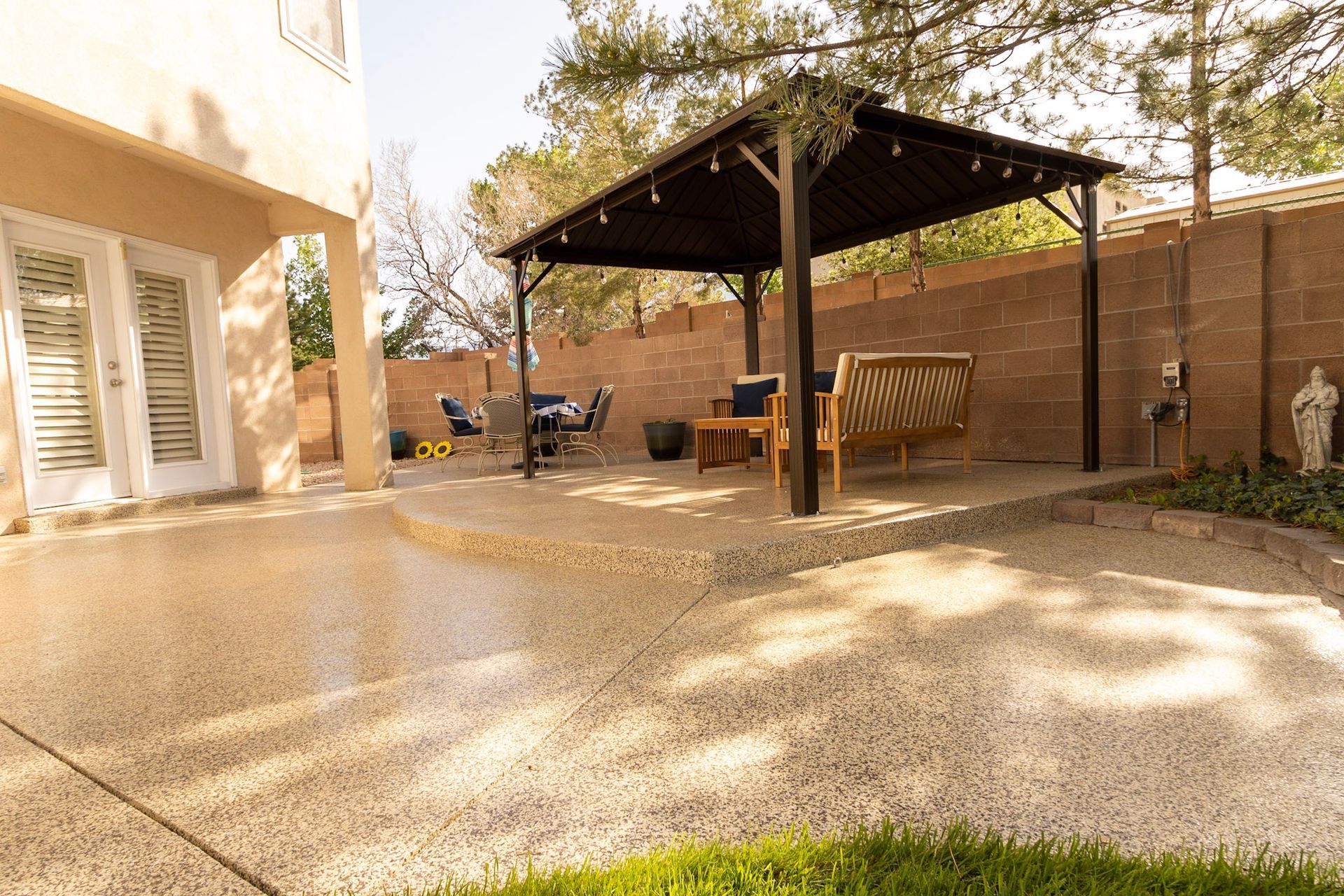 Our concrete patio and walkway floor coatings can help any homeowner create a stunning outdoor area, add curb appeal, and invest in the value of your home. Resurfacing your patio & walkway is not only a quick and cost-efficient way to add style to any outdoor space, but also to protect it from the elements. Our expertly formulated polyurea patio coatings penetrate and seal the pores of your concrete, and our coatings are installed and cure perfectly within 24 hours regardless of the season.